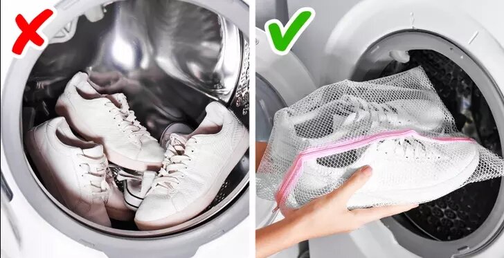 - Используйте специальный мешок: для стирки обуви подойдет прочный мешок или наволочка, чтобы минимизировать шум и защитить барабан.