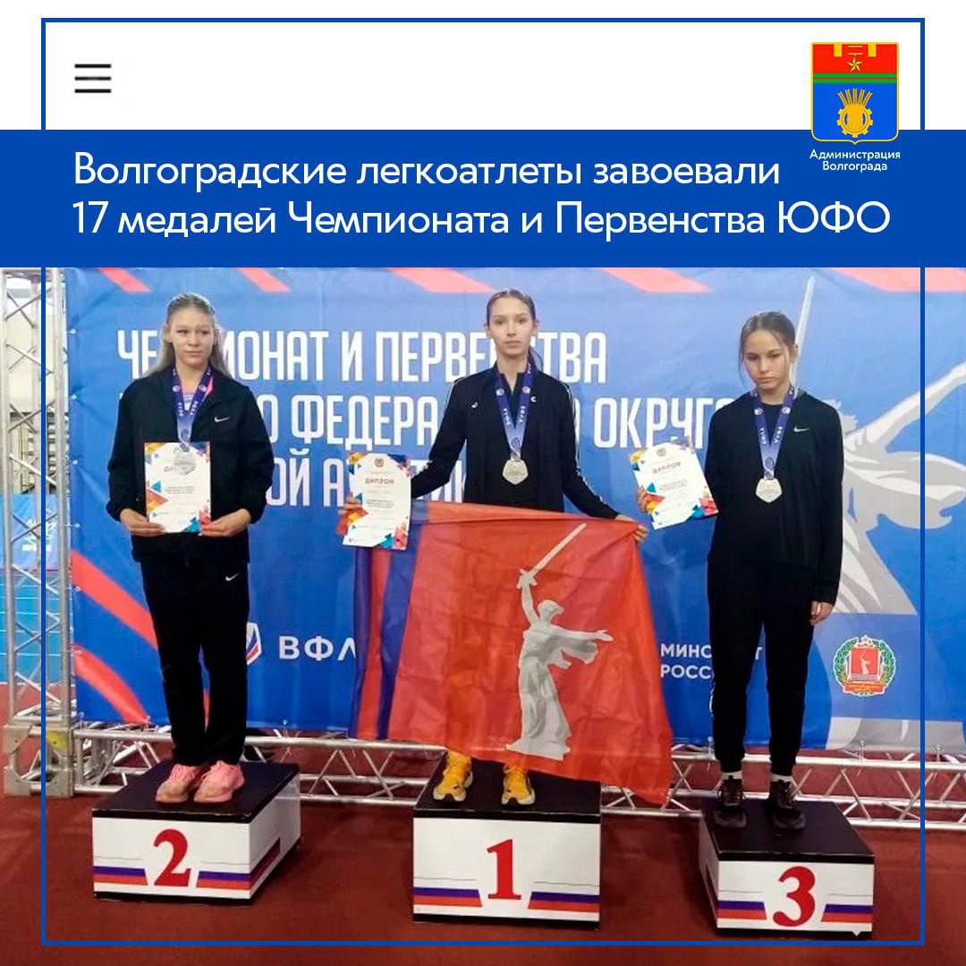 Воспитанники муниципальных спортивных школ №5 и №10 успешно выступили на Чемпионате и Первенстве ЮФО по легкой атлетике, завоевав 17 медалей различного достоинства. Открытые соревнования, проходившие в манеже Волгоградской академии физической культуры, объединили более 700 спортсменов из 10 регионов Южного Федерального округа, включая и атлетов из новых российских территорий - Крыма, Севастополя, ЛНР, ДНР и Запорожья.