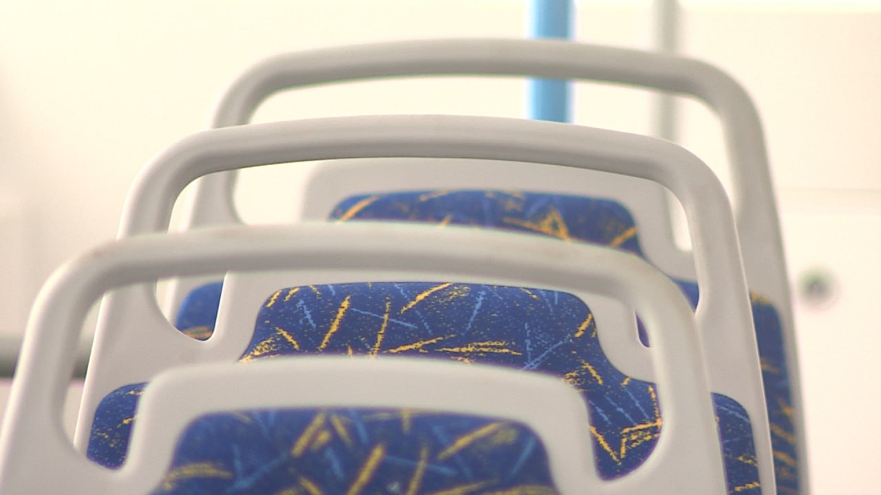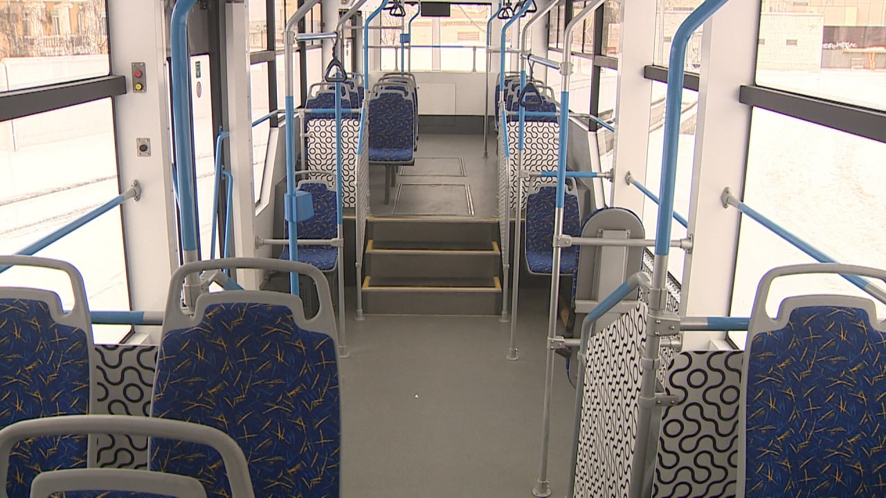 Первые пассажиры опробовали новый сине-белый транспорт сегодня. Вместить вагон может до 150 человек.