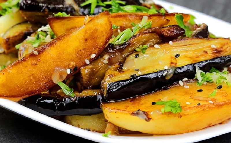 Баклажаны с картофелем представляют собой отличное сочетание простоты и насыщенности. Баклажаны добавляют текстуру, а соевый соус придаёт блюду особый вкус. Это вегетарианское угощение можно подавать как самостоятельное, так и в качестве гарнира.