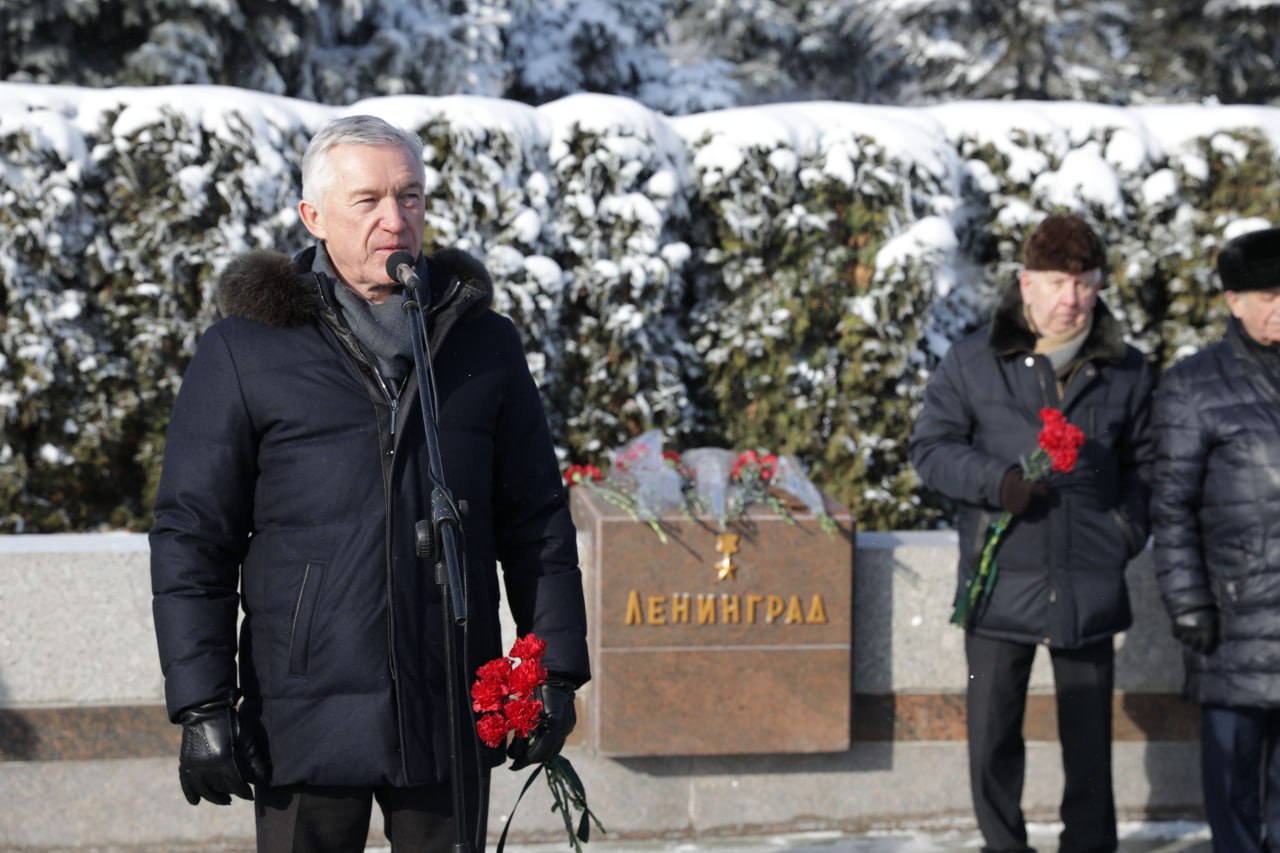 Сегодня у подножия Мамаева кургана состоялся митинг, посвященный 82-й годовщине полного освобождения Ленинграда от фашистской блокады.