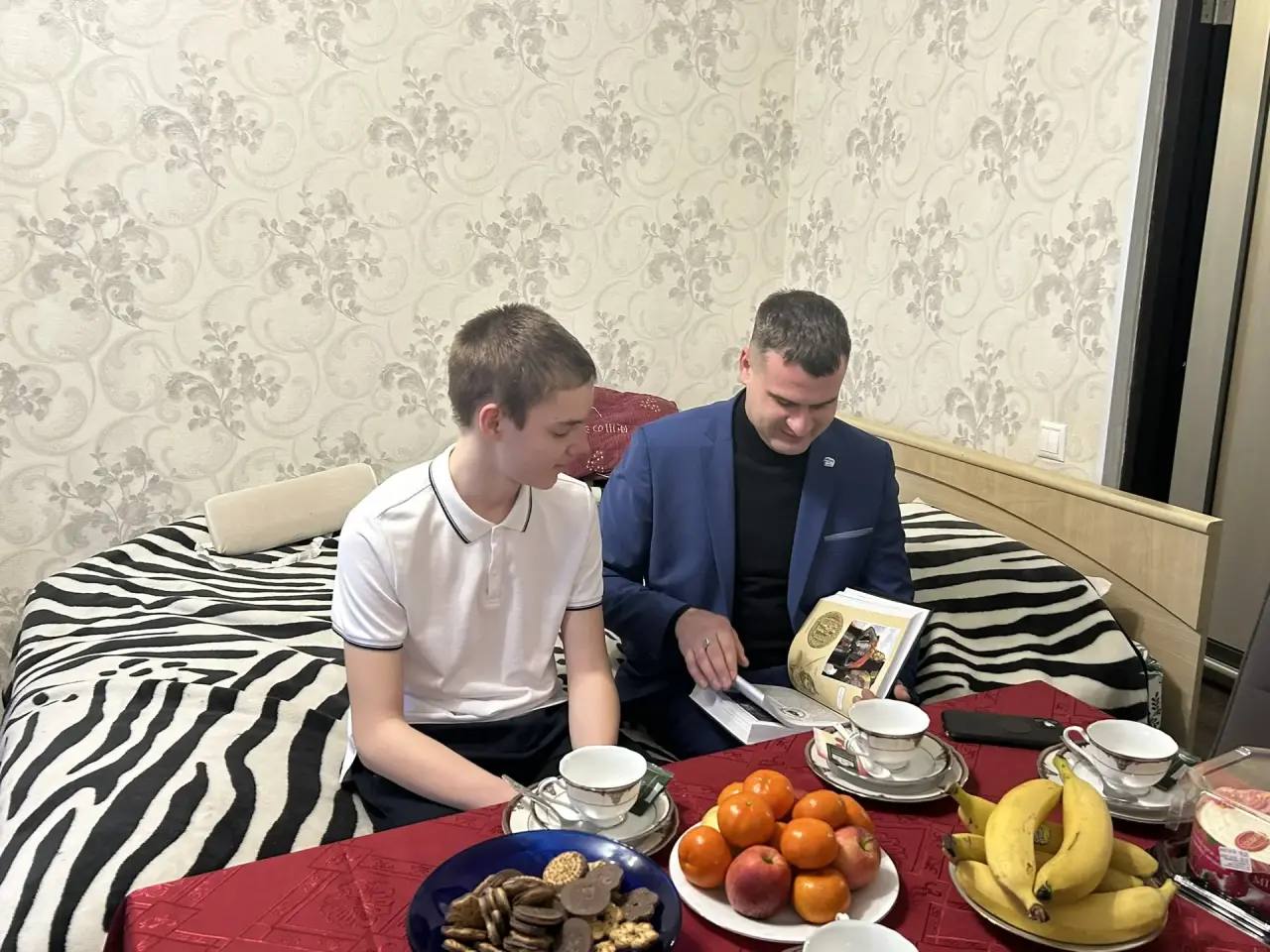 Сегодня в гостях у Гайворонского Егора, и его мамы Ирины. Егору 14 лет, воспитанник школы № 78 Краснооктябрьского района. Подарил Егору энциклопедию «История государства российского Н. М. Карамзина» и спортивные принадлежности.