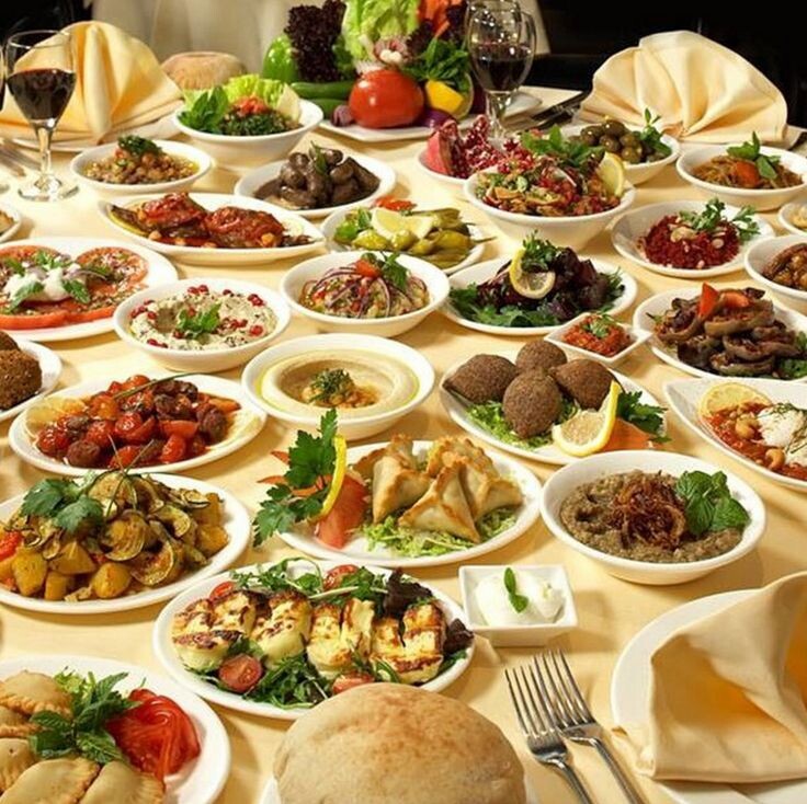 Виноградные листья, фаршированные рисом, тушатся в оливковом масле, а салат Чабан — классический набор помидоров, огурцов, лука и сладкого перца со свежей заправкой. Пикантная смесь из овощей и специй завершает эту часть меню.
