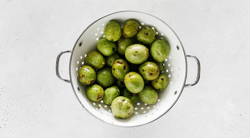 Первым делом необходимо тщательно промыть зеленые грецкие орехи. Каждый из них следует обтереть насухо, используя бумажные салфетки или чистую тряпочку. Обязательно наденьте медицинские перчатки, чтобы защитить руки. Из-за высокого содержания йода сок орехов может сильно окрашивать кожу и предметы.