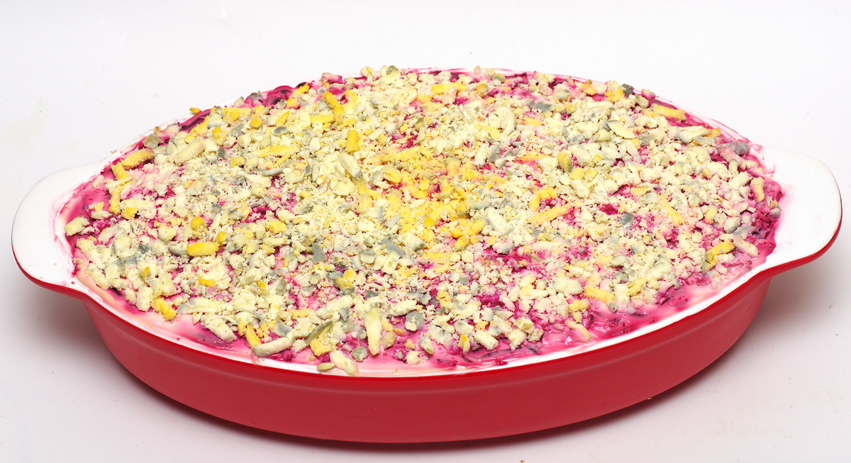 Этот салат стал одним из самых узнаваемых символов советской кухни. Простота и гармония вкусов делают его уникальным. Главные ингредиенты — солёная сельдь, вареные овощи, яйца и лук, укладывающиеся слоями и обильно смазываемые майонезом.