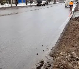 Уборка мокрого снега с придорожных полос.