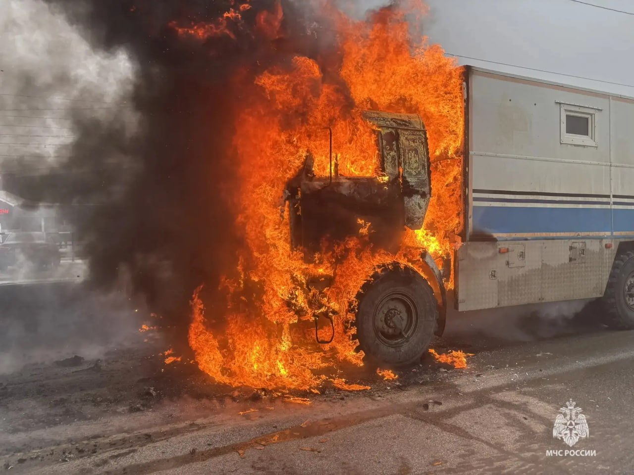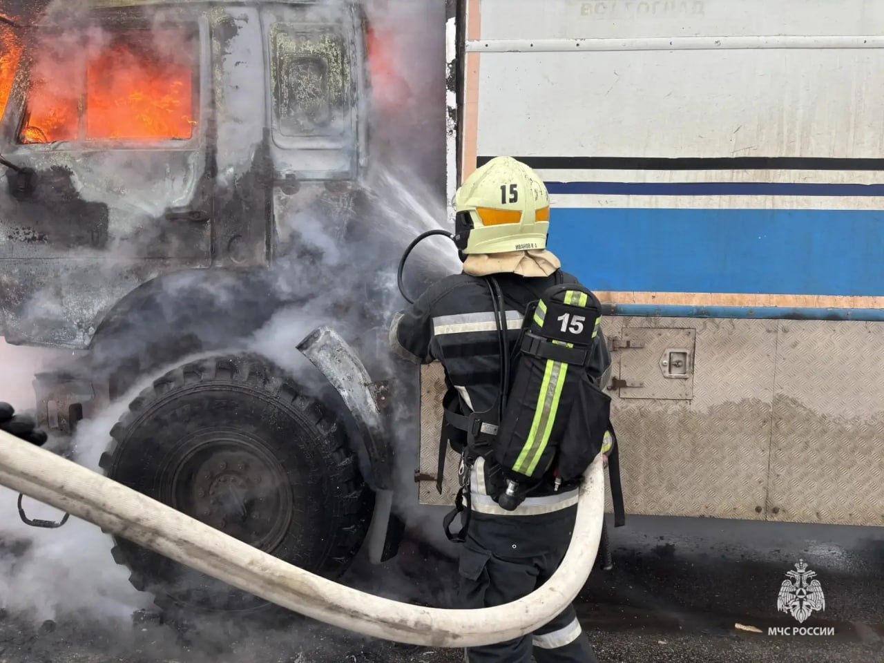 Грузовик загорелся на дороге в Волгограде