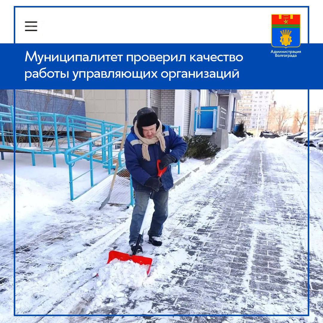 Согласно данным проводимого мониторинга, управляющие компании Волгограда уже завершили уборку снега с входных групп и тротуаров во дворах, охватывающих более 4100 домов. В настоящее время на придомовых территориях УК продолжают работу по уборке снежных масс и обработке подходов к подъездам, тротуаров и прочих прилегающих к жилым зданиям участков. Контроль за качеством выполнения уборки осуществляют районные администрации и Департамент ЖКХ и ТЭК, в том числе управление "Жилищная инспекция Волгограда".