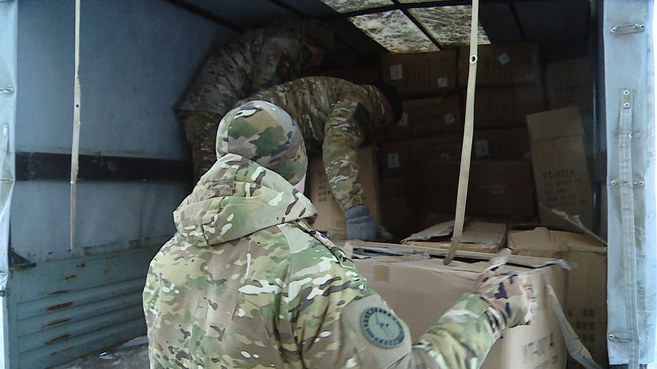 Бойцам передали несколько десятков беспилотников, автомобиль УАЗ, снегоболотоходы и запчасти.