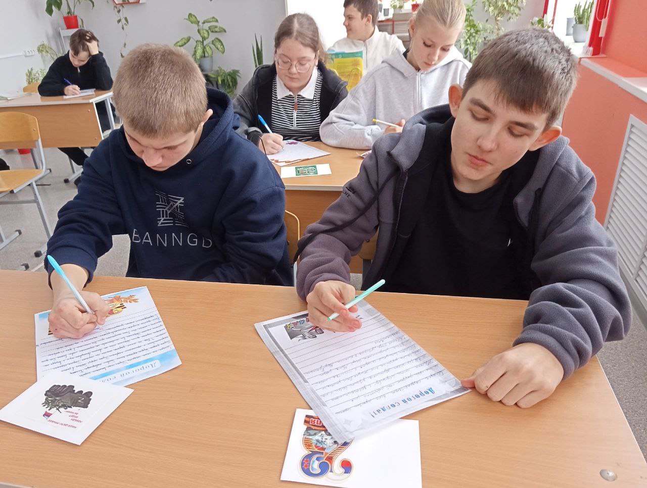 Школьники Фролово пишут солдатам СВО.