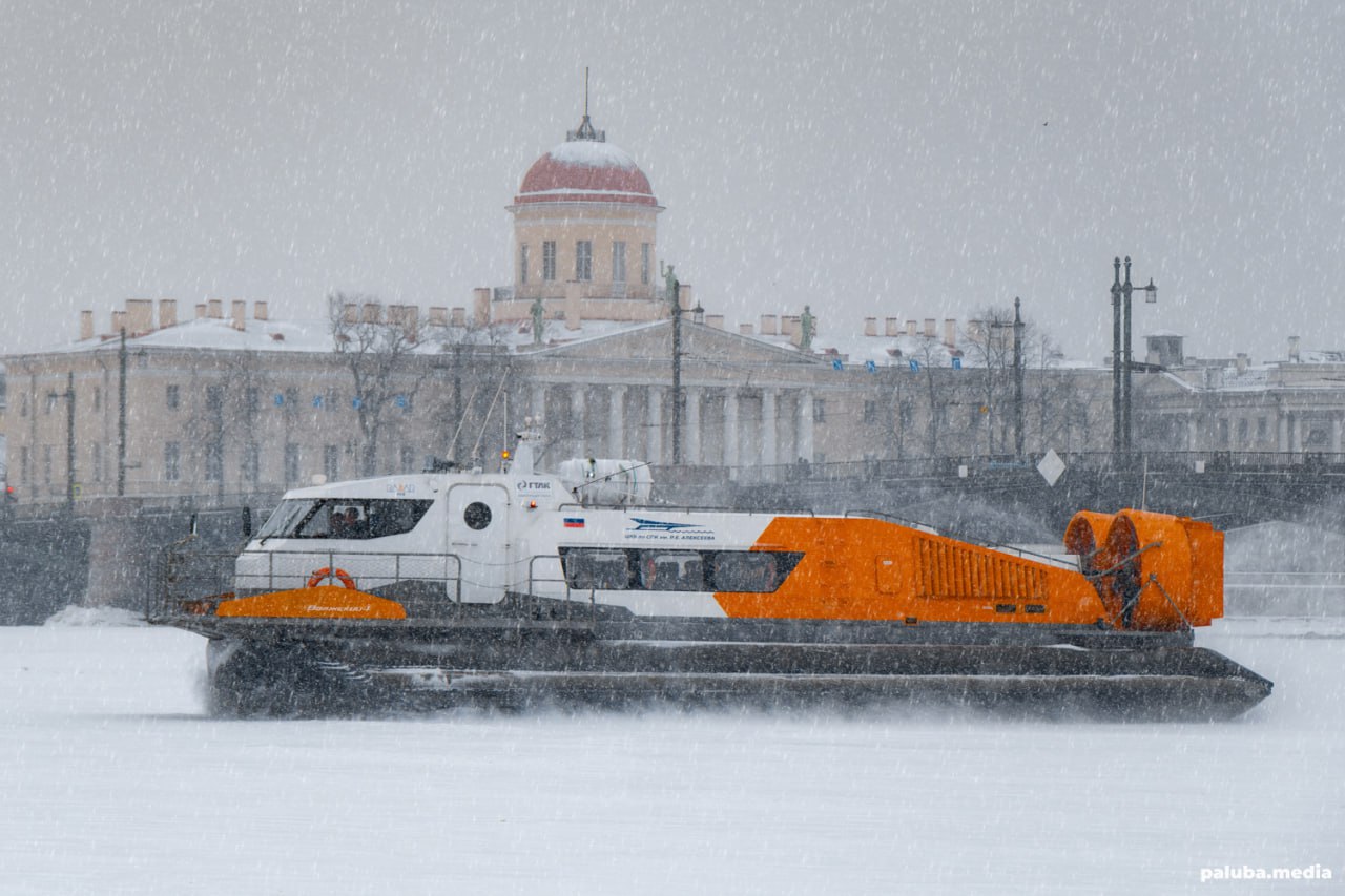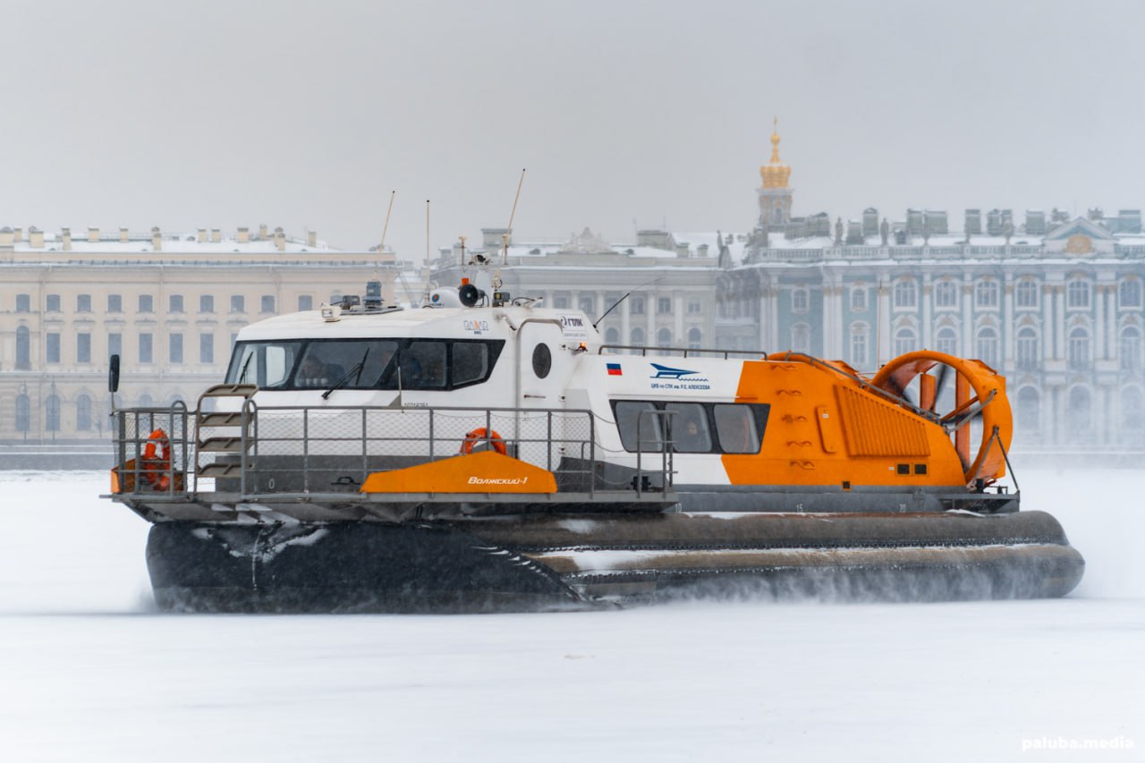 В кадре головное судно на воздушной подушке (СВП) «Волжский-1» проекта 23730.