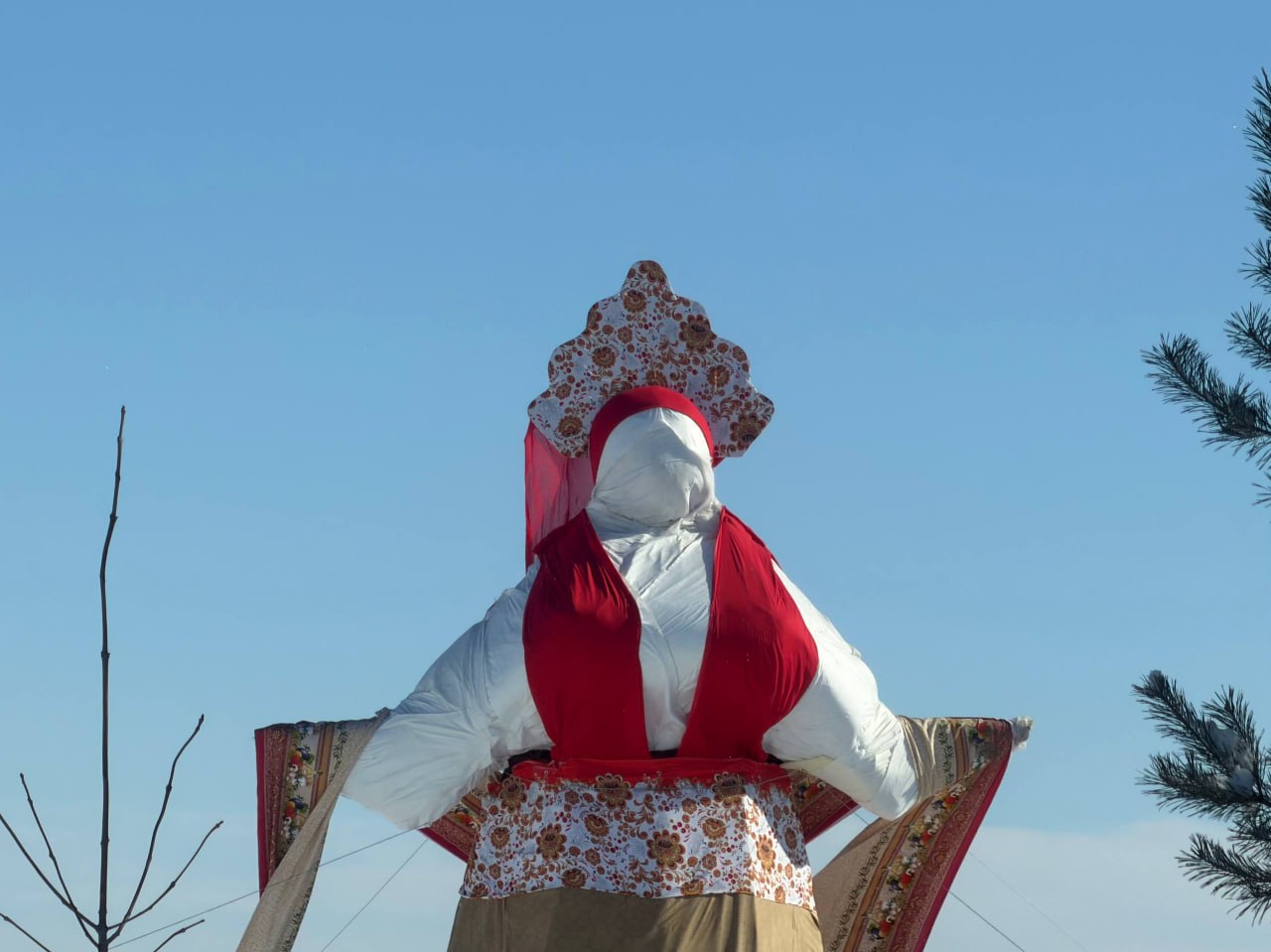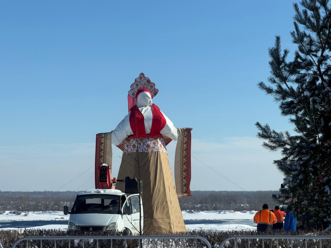 В ЦПКиО Волгограда показали, как выглядит десятиметровое чучело Масленицы