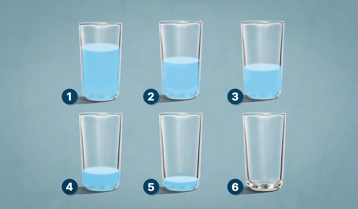 Пятый стакан: Стакан с минимальным количеством жидкости притягивает пессимистов, которые видят мир как несправедливое место и воспринимают жизнь как нечто скучное. Им стоит постараться заметить хорошие моменты вокруг, чтобы не впасть в пессимистичную бездну.