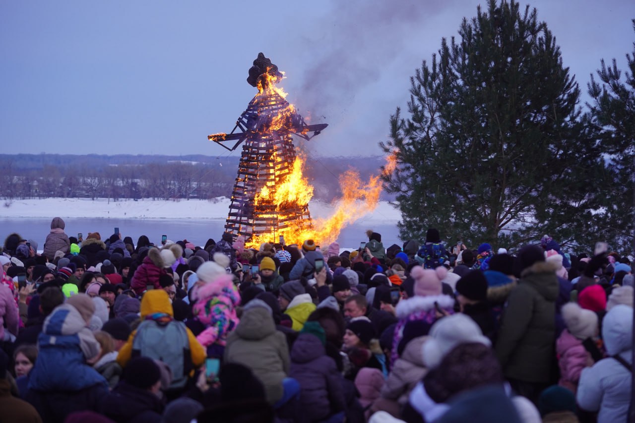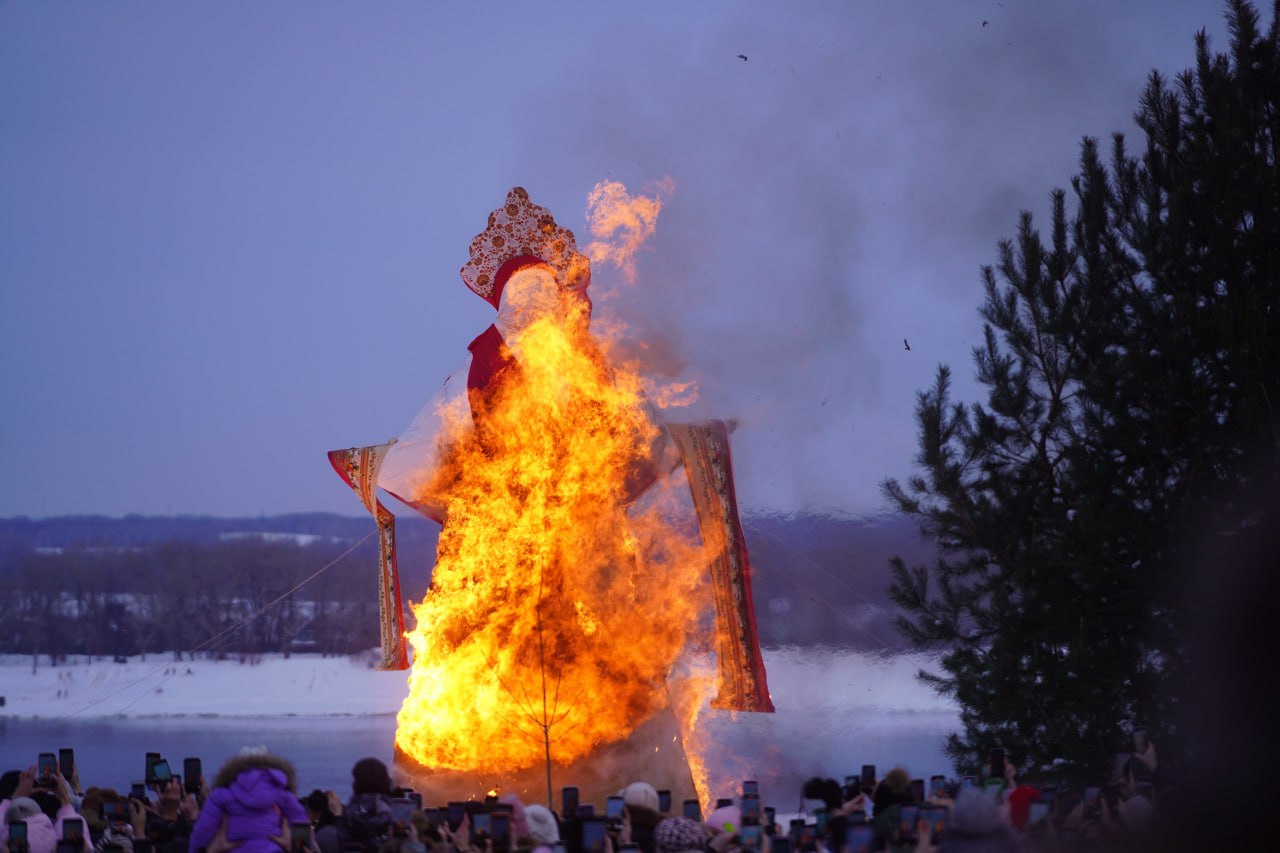 Десятиметровое чучело сожгли на Масленицу в ЦПКиО Волгограда. Ждем весну. Хватит уже морозов и снега