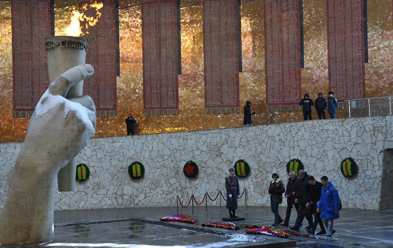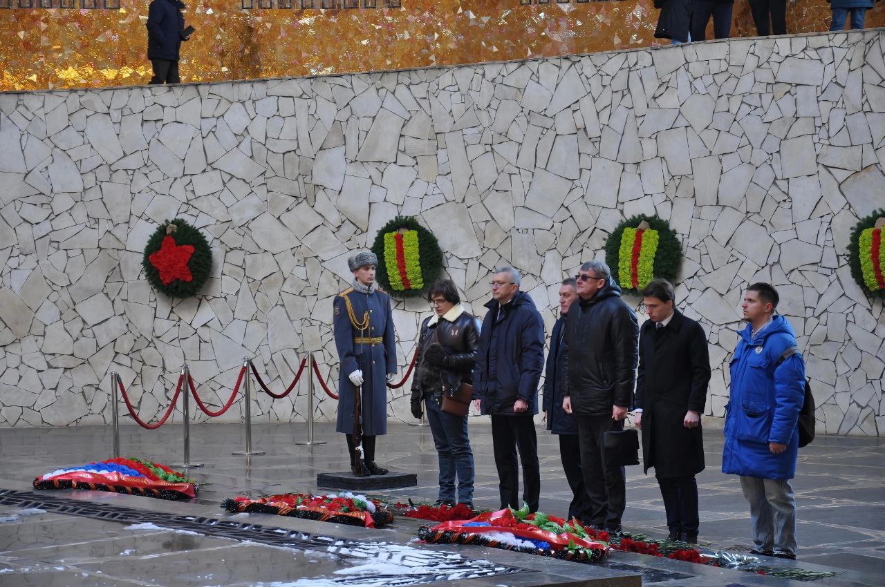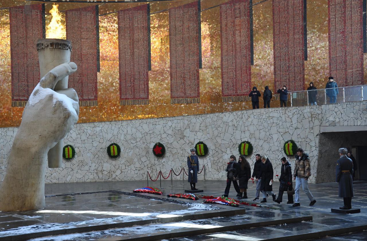 23 февраля в День защитника Отечества председатель Избирательной комиссии Волгоградской области Виктор Черячукин, председатель ТИК по г. Камышину, участник специальной военной операции Сергей Анихреев с членами Молодежной избирательной комиссии Волгоградской области, молодежных советов при территориальных избирательных комиссиях г. Волгограда возложили цветы к Вечному огню в Зале Воинской Славы на Мамаевом кургане.