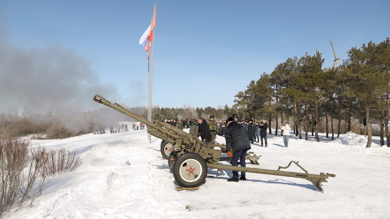 Сегодня на южном склоне Мамаева кургана в честь Дня защитника Отечества был дан символический «Выстрел памяти».