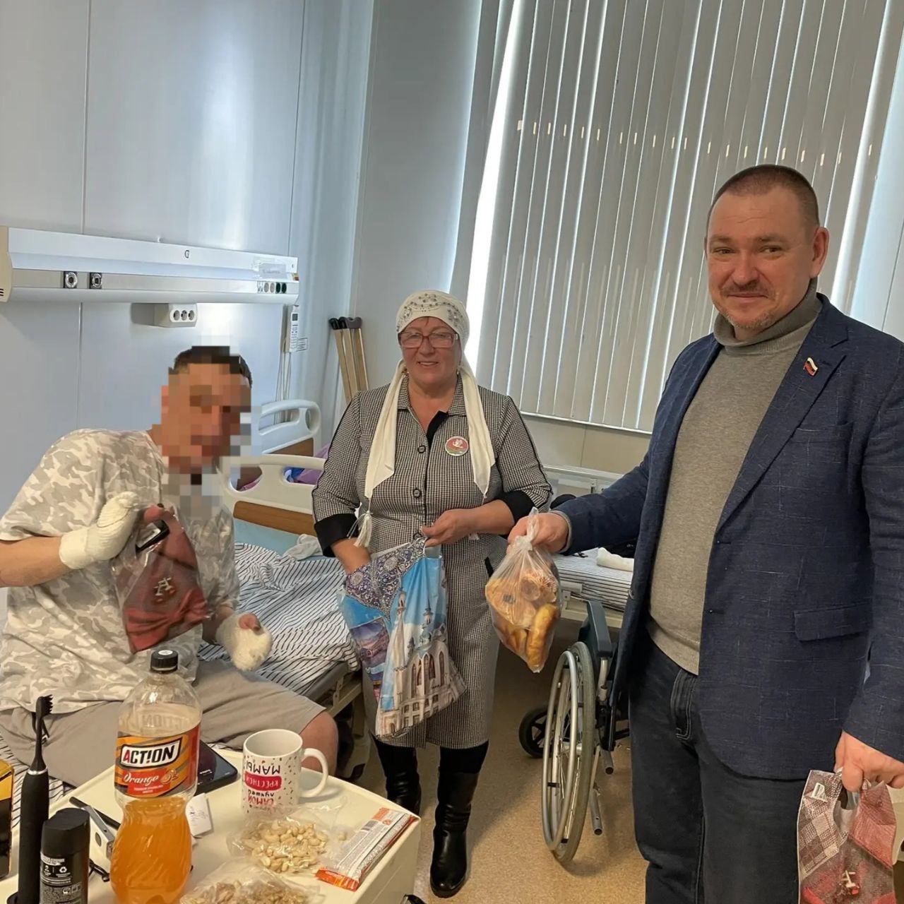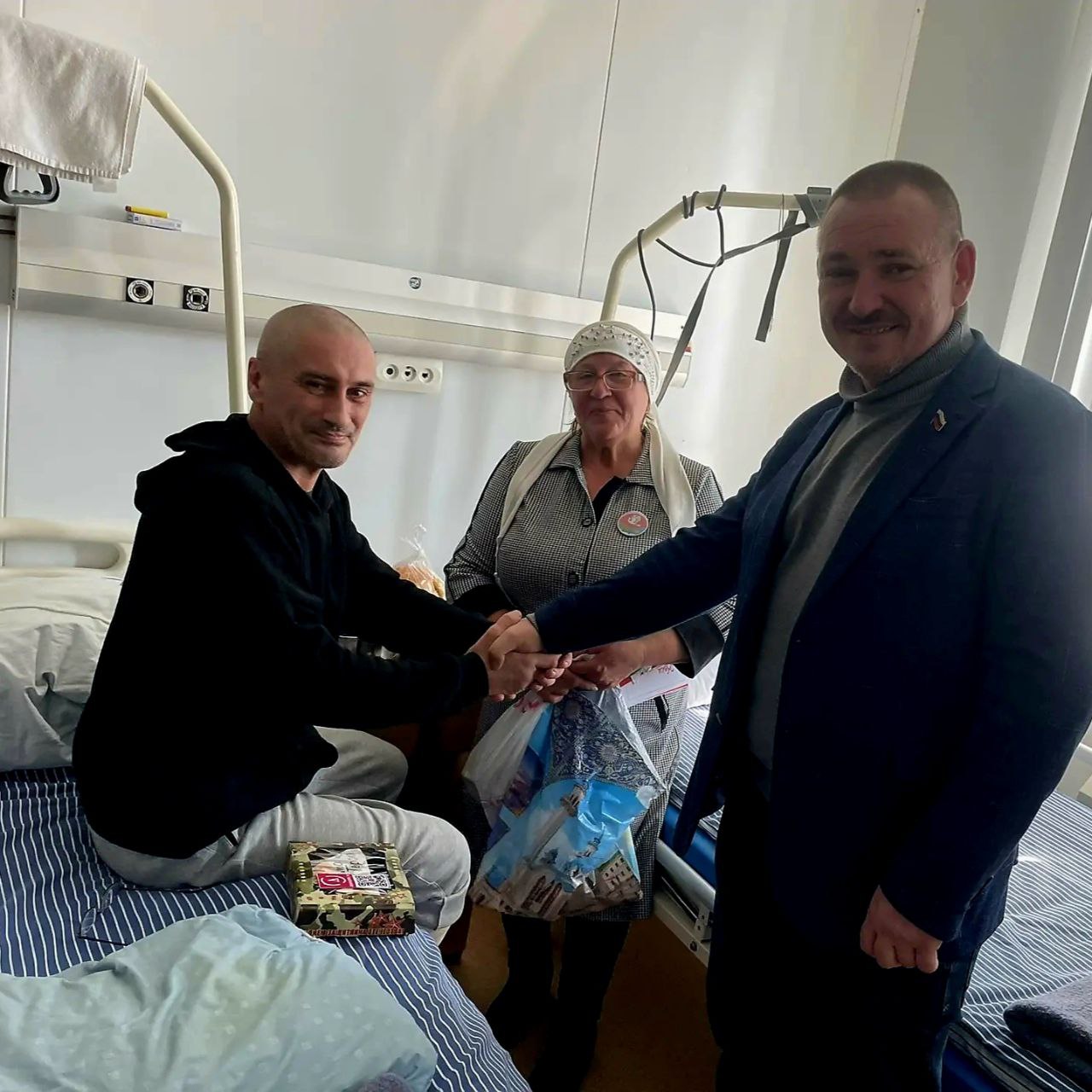 Поклонились в пояс настоящим Защитникам Отечества, пожелали скорейшего выздоровления!