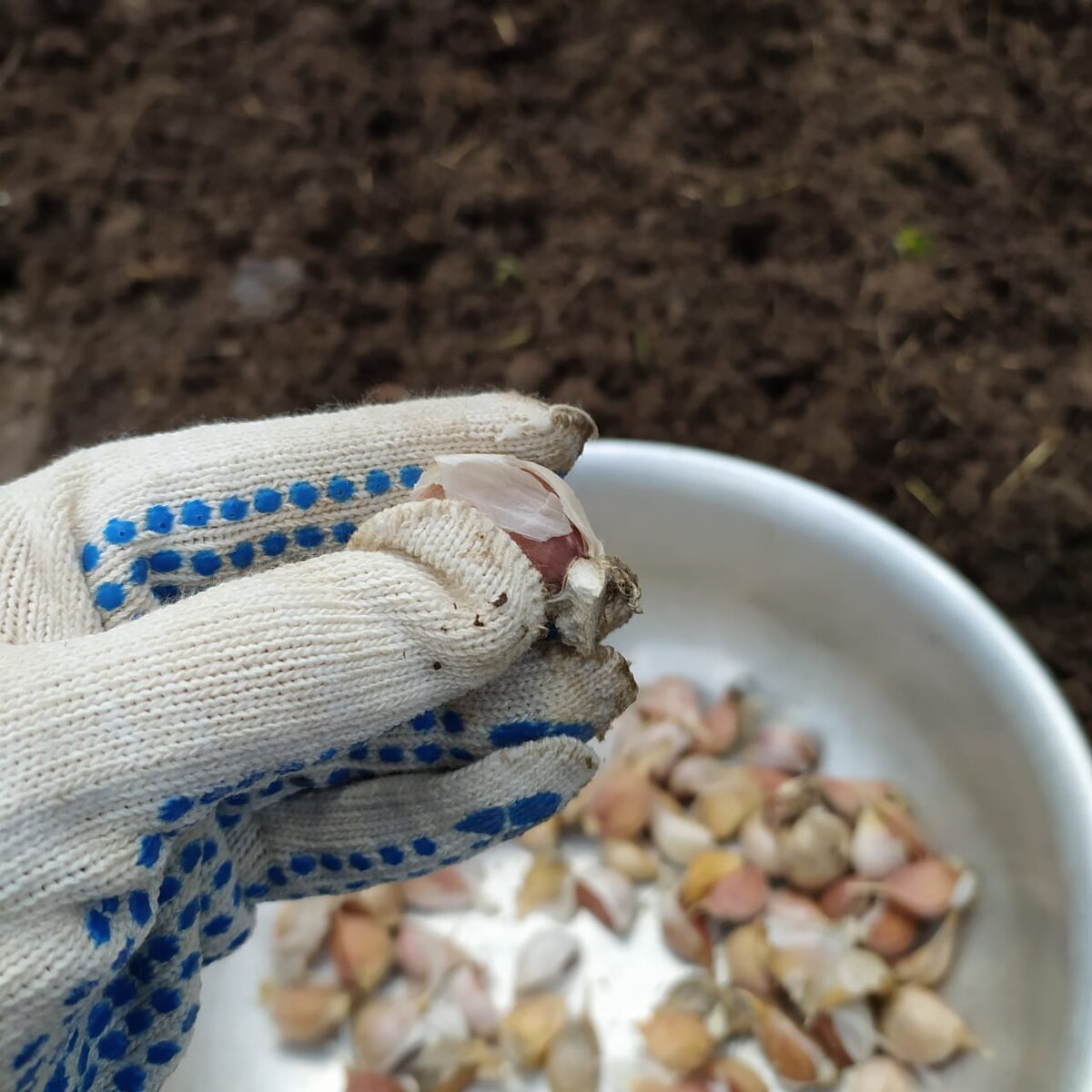- Если почва мягкая, просто сделайте ямку и поместите туда зубчики, и не забудьте присыпать их землей.