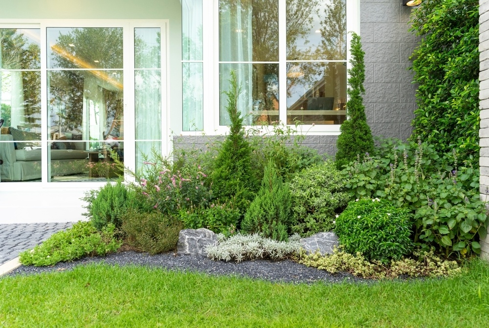 - Подбор растений с учетом их размеров. Убедитесь, что высота и развитие корневой системы ваших растений не навредят фундаменту. Избегайте крупных деревьев, корни которых могут повредить основание дома.