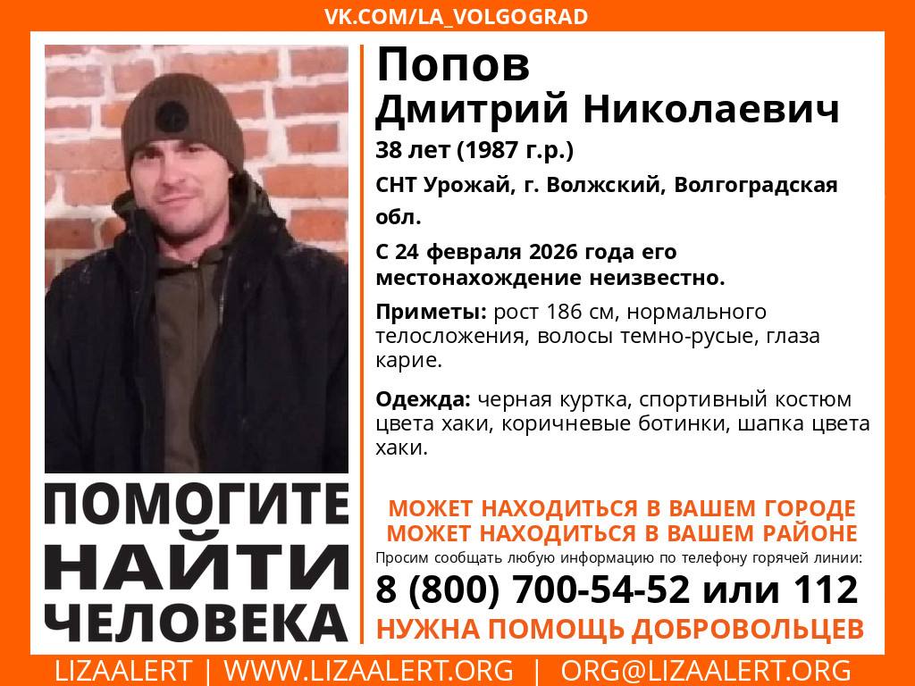 Мужчина перестал выходить на связь несколько дней назад. Его местонахождение остается неизвестным с 24 февраля 2026 года. Последний раз Дмитрия видели на территории садоводческого некоммерческого товарищества "Урожай" в городе Волжском.