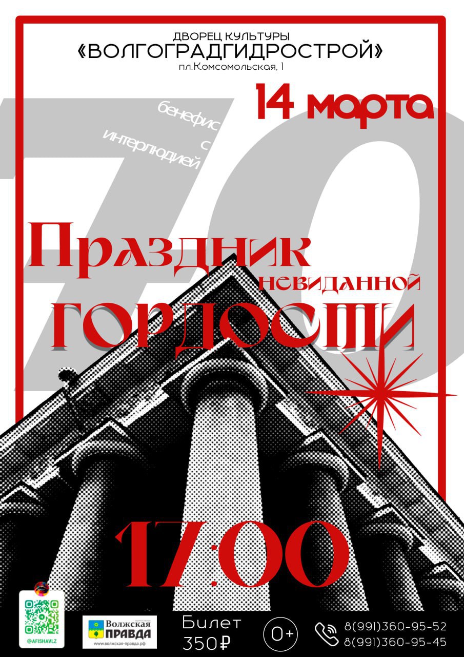 14 марта в ДК «ВГС» состоится долгожданное событие — концерт, посвященный 70-летию легендарного Дворца культуры «Волгоградгидрострой»!