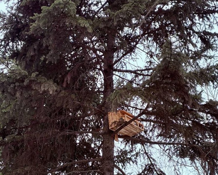 В парке «Гидростроитель» в Волжском для белок развесили на соснах именные домики и кормушки.