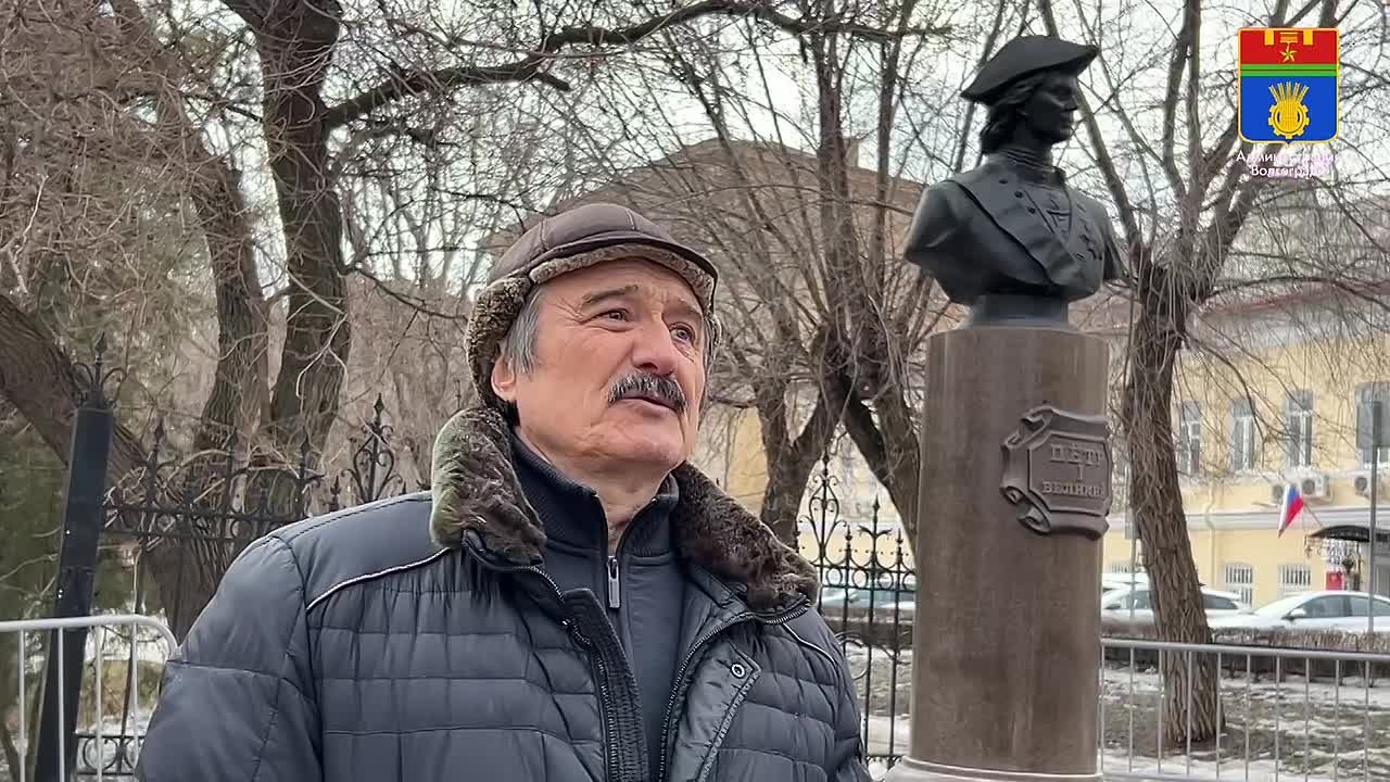 Высота отлитого в бронзе скульптурного портрета первого российского императора составляет порядка 1,2 метров, вместе с постаментом – 3,6 метра. Его автором является известный волгоградский скульптор Сергей Щербаков. Ранее скульптор выступил с инициативой заменить памятник, который за годы эксплуатации, начал утрачивать художественно-эстетические качества, на бюст, выполненный из более долговечного материала.