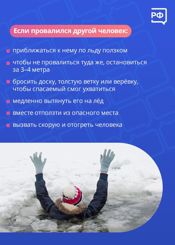 Все знают, что в любую погоду на лед выходить крайне опасно. Но что делать, если вы или другой человек все-таки оказались в ледяной воде? Делимся карточками от Объясняем.рф