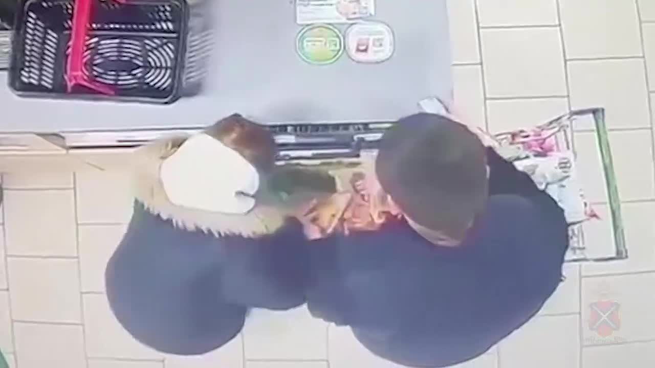 Пока молодой человек пробивал маленькие пачки с соком, его супруга складывала в пакет остальные продукты. Это зафиксировали камеры видеонаблюдения.