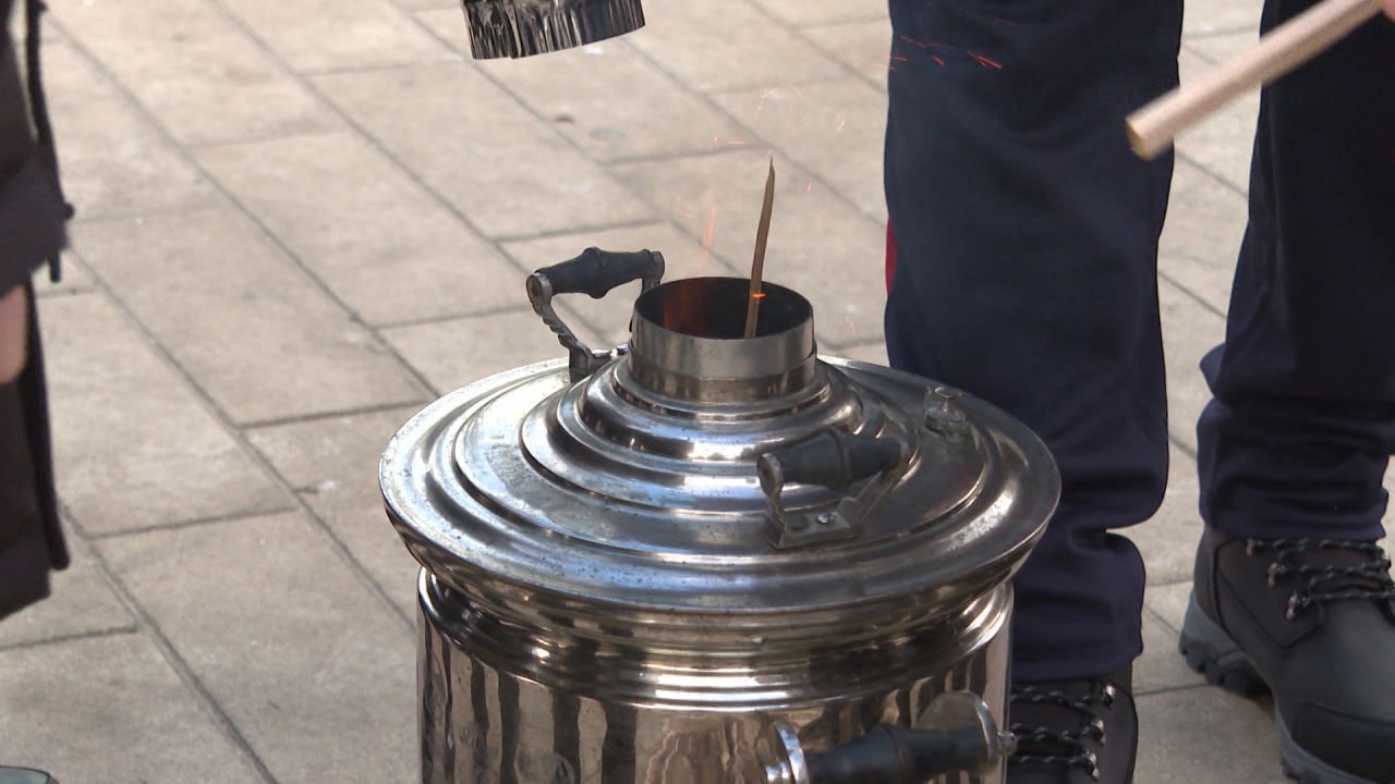 Волгоградец показал школьникам процесс работы самовара на улице
