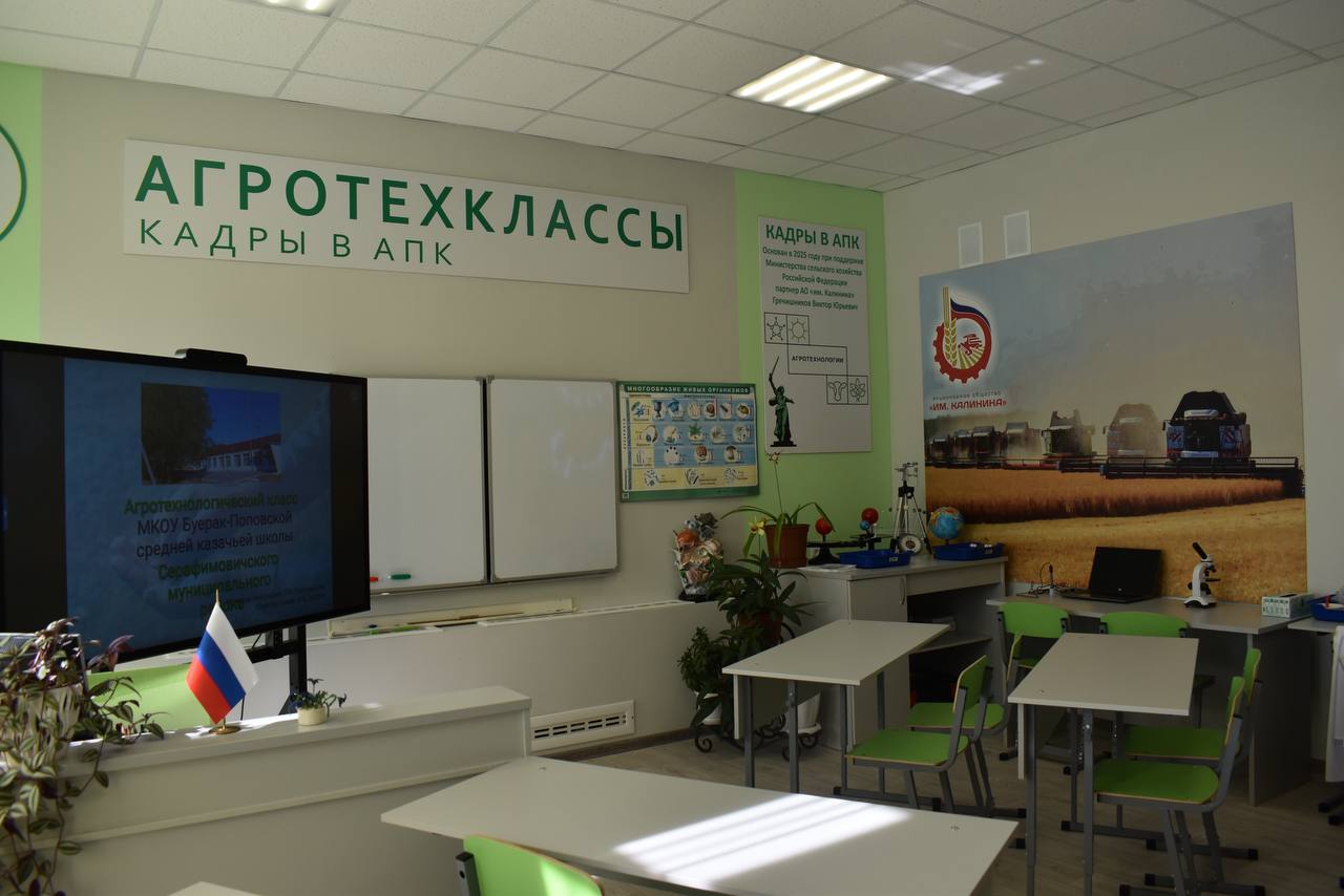 В 2025 году на оснащение агроклассов направили более 19 млнрублей, в проекте участвуют 20 предприятий. Один из партнёров — АО «Им. Калинина» (Серафимовичский район).
