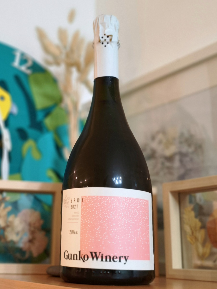 Следующее на очереди — «Gunko Winery Брют 2021» в белом варианте. Этот игристый напиток радует свежим цитрусовым ароматом с нотами цукатов и хрустящих сухариков. Во вкусе также доминирует высокая кислотность, вперемешку с минеральными элементами и цитрусовыми нюансами.
