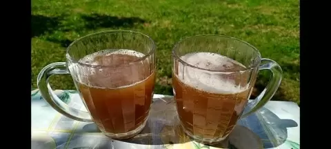 Получившийся квас имеет замечательный сладковатый вкус, однако по сравнению с классическим бочковым вариантом он скорее напоминает домашнюю бражку. Такой напиток отлично освежает и подходит для летних вечеринок.