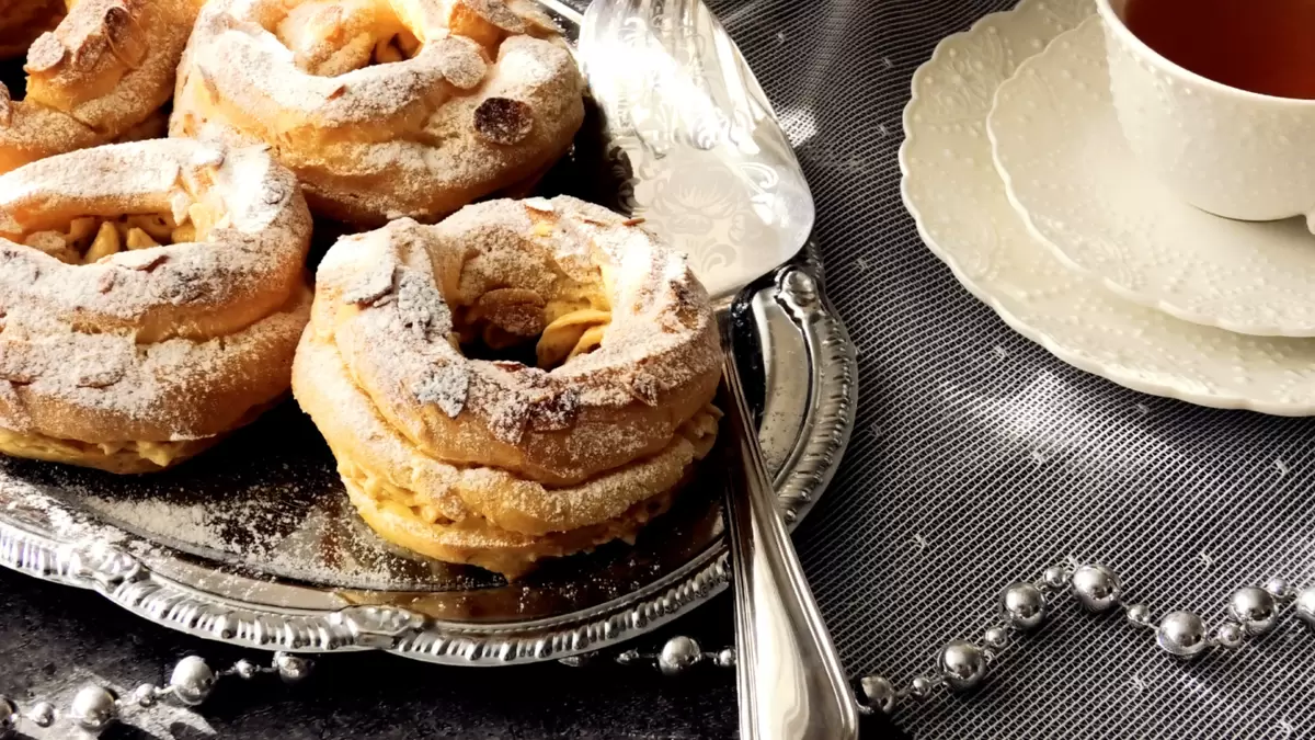 Пирожные Пари-Брест олицетворяют французское кондитерское искусство. Этот удивительный десерт, напоминающий по форме велосипедное колесо, стал настоящей иконой среди сладостей благодаря своему необычному сочетанию легкого заварного теста и изысканного крема, в основе которого лежит ореховое пралине.