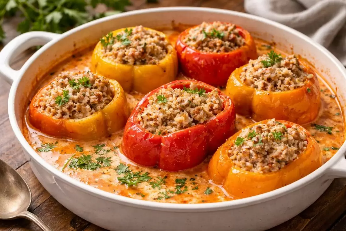 Некоторые блюда знакомы каждому — они не требуют представления и не нуждаются в особом украшении. Фаршированные перцы — именно из таких. Как только они появляются на столе, в доме сразу становится уютнее и спокойнее. Теплый, знакомый аромат создает атмосферу, будто кто-то заранее позаботился о вас.