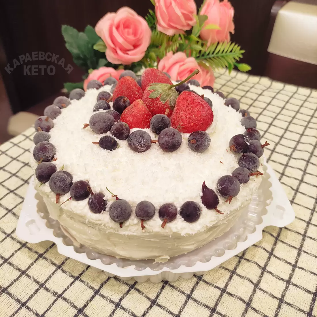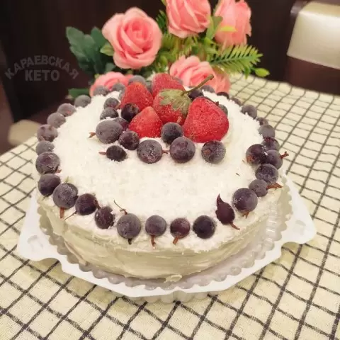 Этот торт не просто угощение, а настоящее кулинарное произведение, которое впечатляет ярким ягодным вкусом как самого бисквита, так и нежного крема. Особую изюминку ему придает прослойка из кето джема на основе черники, придающая слоеной структуре дополнительную ягодную насыщенность.