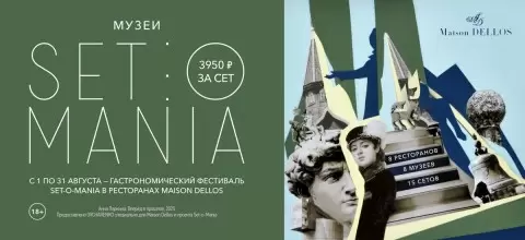 Летний Set-o-Mania вдохновлён произведениями искусства из восьми известных музеев, что добавляет уникальности каждому гастросету. Во время предыдущего зимнего фестиваля мероприятия проходили в сотрудничестве с выдающимися театрами города, а сейчас рестораны объединяются с культурными сокровищницами, такими как Третьяковская галерея, Музеи Московского Кремля и Музей русского импрессионизма.