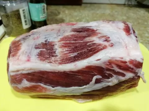 - Окорок (бедро). Этот вариант плотнее и чуть более постный, но отлично подойдет для ровной нарезки.