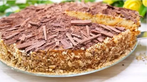 Бисквит лучше всего нарезать на 2-3 коржа. Каждый слой пропитывается, а затем намазывается полученным кремом. Бока и верх торта можно украсить орехами или шоколадными стружками. Дайте готовому десерту настояться хотя бы 20 минут, чтобы он пропитался, и подавайте к чаю.