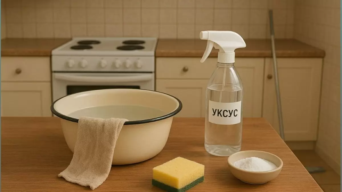 - 50-100 мл уксуса 9% (удобно использовать в пульверизаторе);