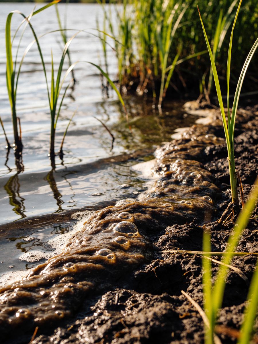 Сапропель — это многослойные отложения, которые образуются на дне пресноводных водоёмов с ограниченным доступом кислорода. Его составляющие — разложившиеся растения, частички почвы и останки живых организмов — накапливаются в течение многих лет.