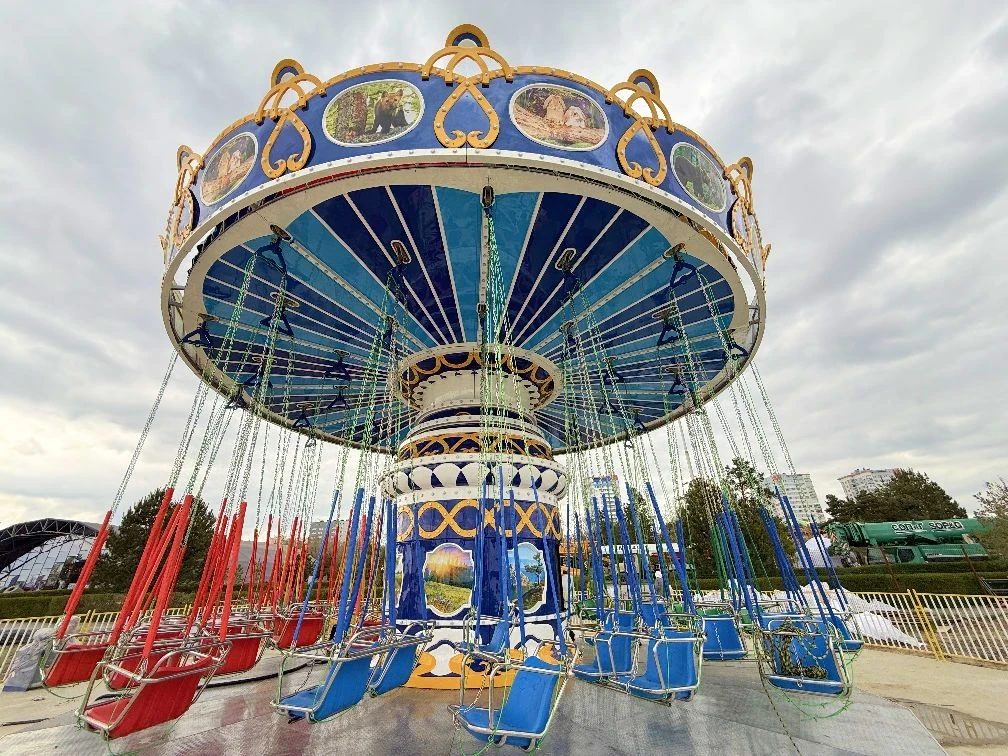 Специалисты закончили монтаж «Прыгающей машины» и «Цепочной карусели». Завершается сборка качели «Вращающаяся вышка».