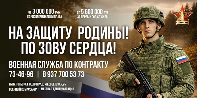 Присоединиться к СВОим и заключить контракт с Минобороны России можно в пункте отбора в Волгограде по адресу: ул. Советская, 25.