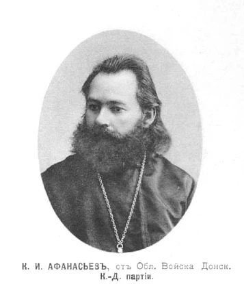 После роспуска Думы К.И. Афанасьев подписал Выборгское воззвание, за что был осужден, приговорен к трем месяцам тюрьмы, лишен избирательных прав и сана священника. 275 прихожан церкви хутора Тормосин выступили в защиту священника, но их прошение было отклонено Синодом.