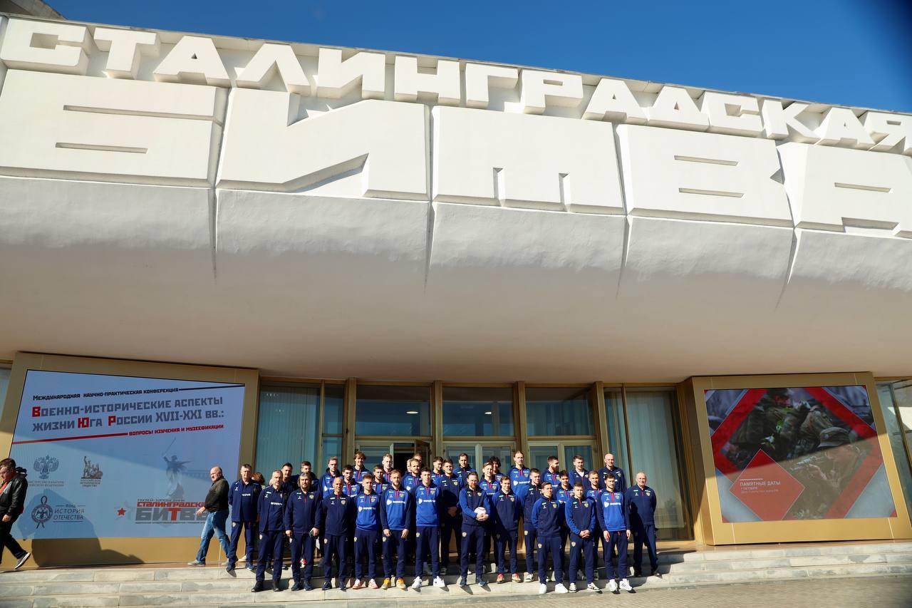 Перед матчем игроки российской команды побывали в музее-заповеднике «Сталинградская битва», где им рассказали о ключевом сражении Великой Отечественной войны, показали множество памятных артефактов.